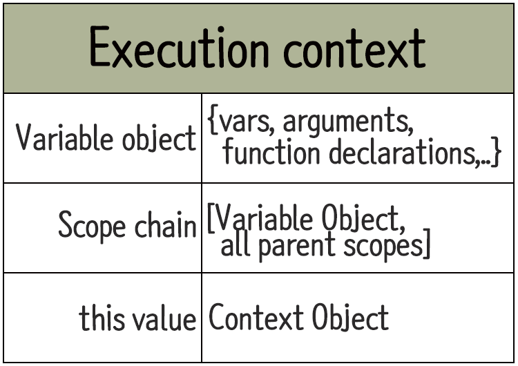 실행 컨텍스트가 갖는 정보는 다음과 같다.